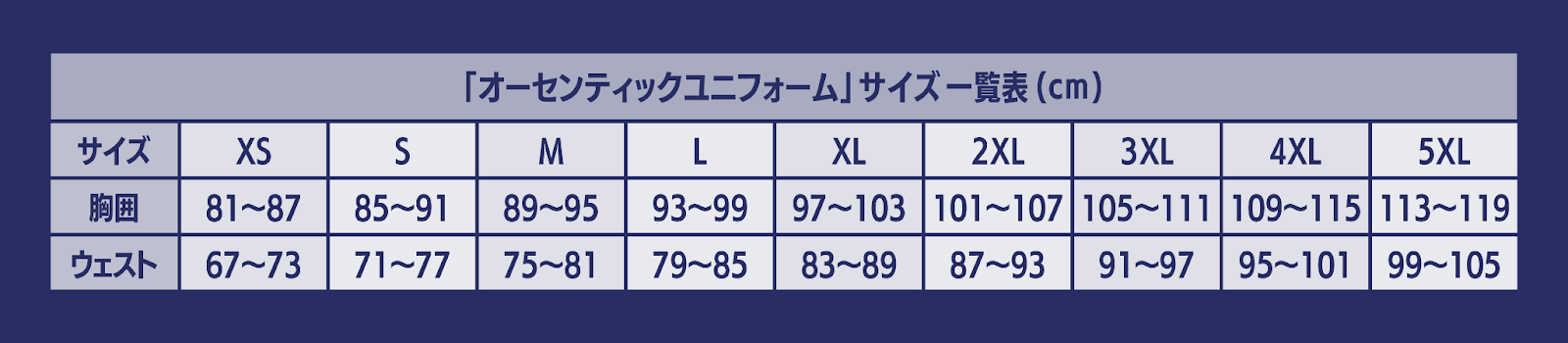 選手着用サイズ ※予告なく変更になる可能性がございます。