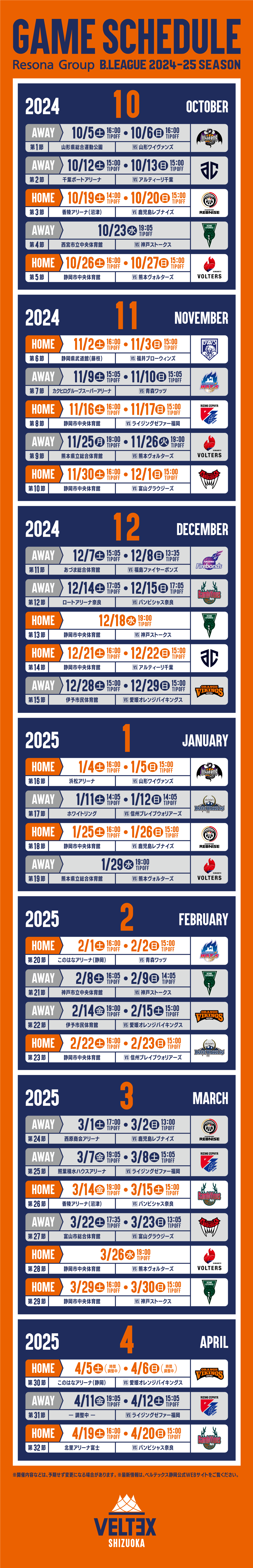 りそなグループB.LEAGUE 2024-25 SEASON の全試合カーディングが決定しましたのでお知らせいたします。
