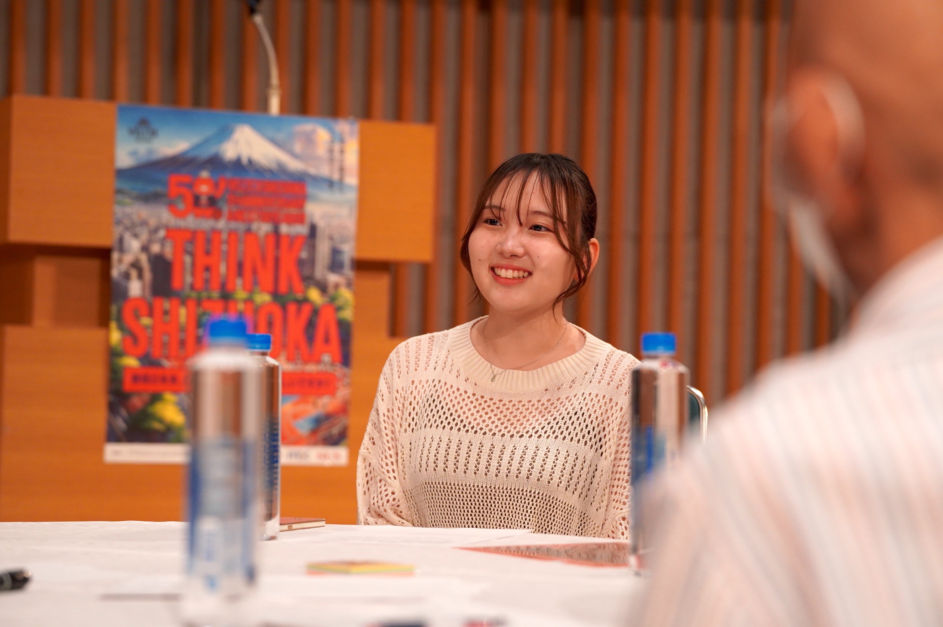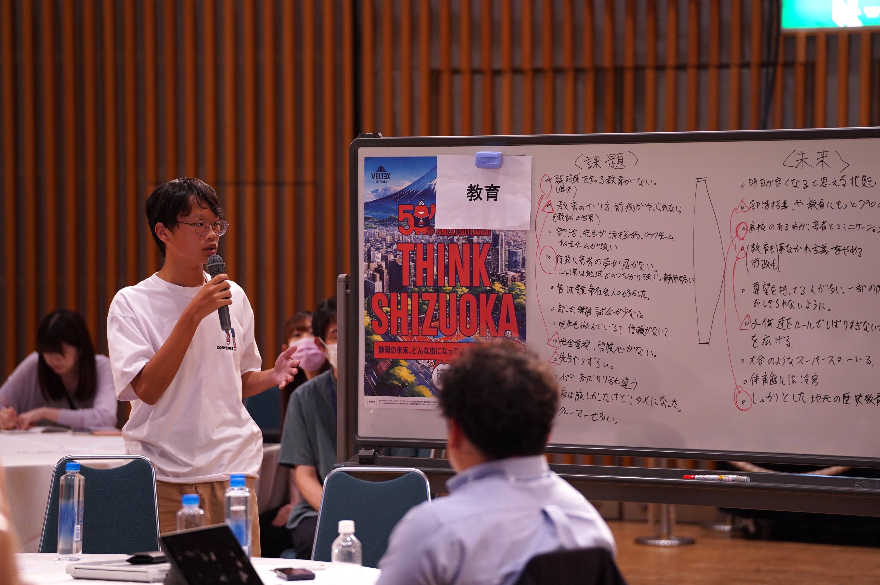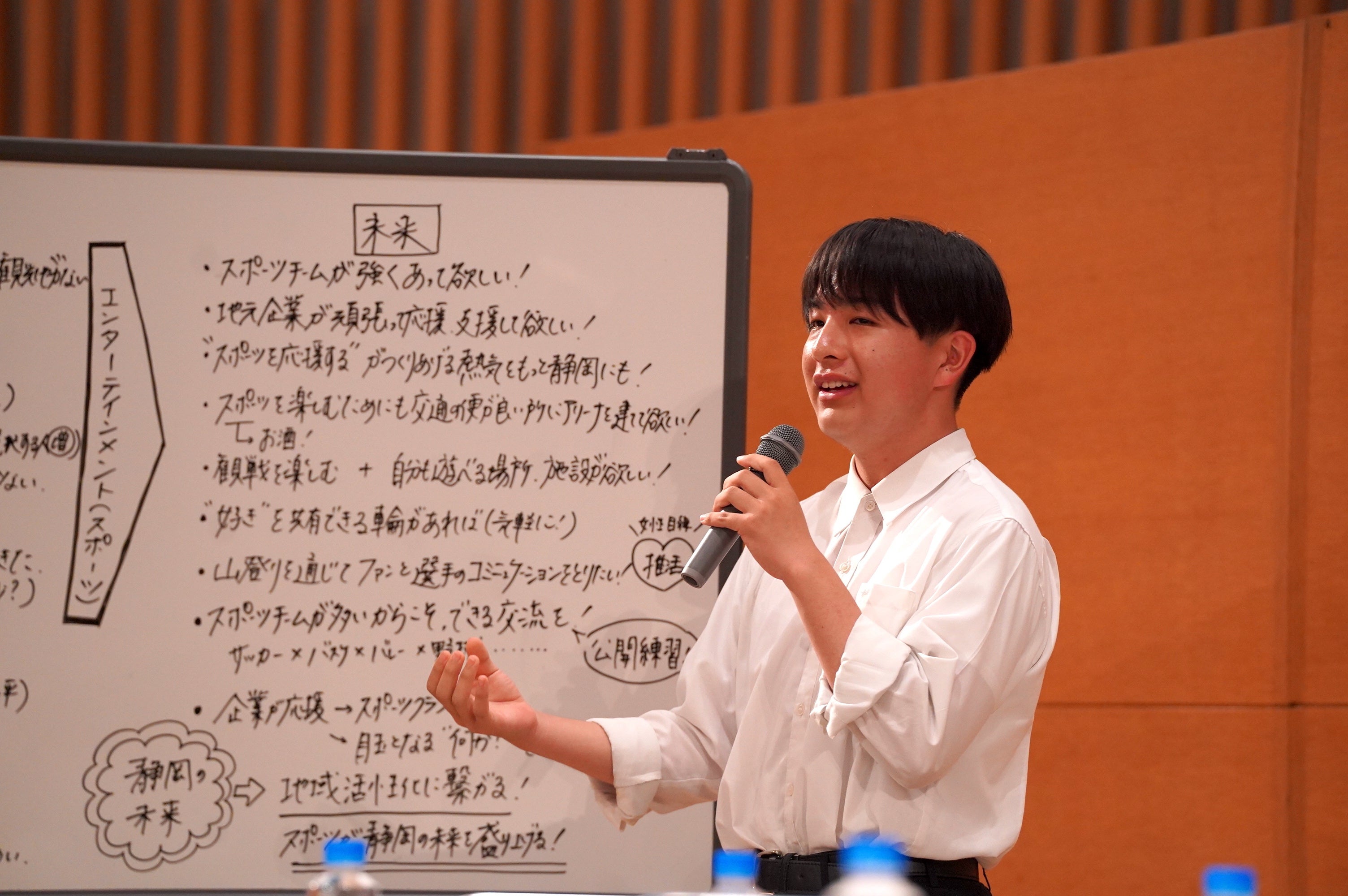 「静岡についてこんなに話すことが今までなくとても楽しく参加できました。若い高校生も一緒でしたが、思っていることは一緒なんだと改めて感じることもできいい機会でした。私のグループのテーマは企業でしたが、スポーツをどう活かしていくかを考えました。若い世代が楽しく静岡で働ける環境があって欲しいと思います。とても楽しい機会に参加させていただきありがとうございました。」