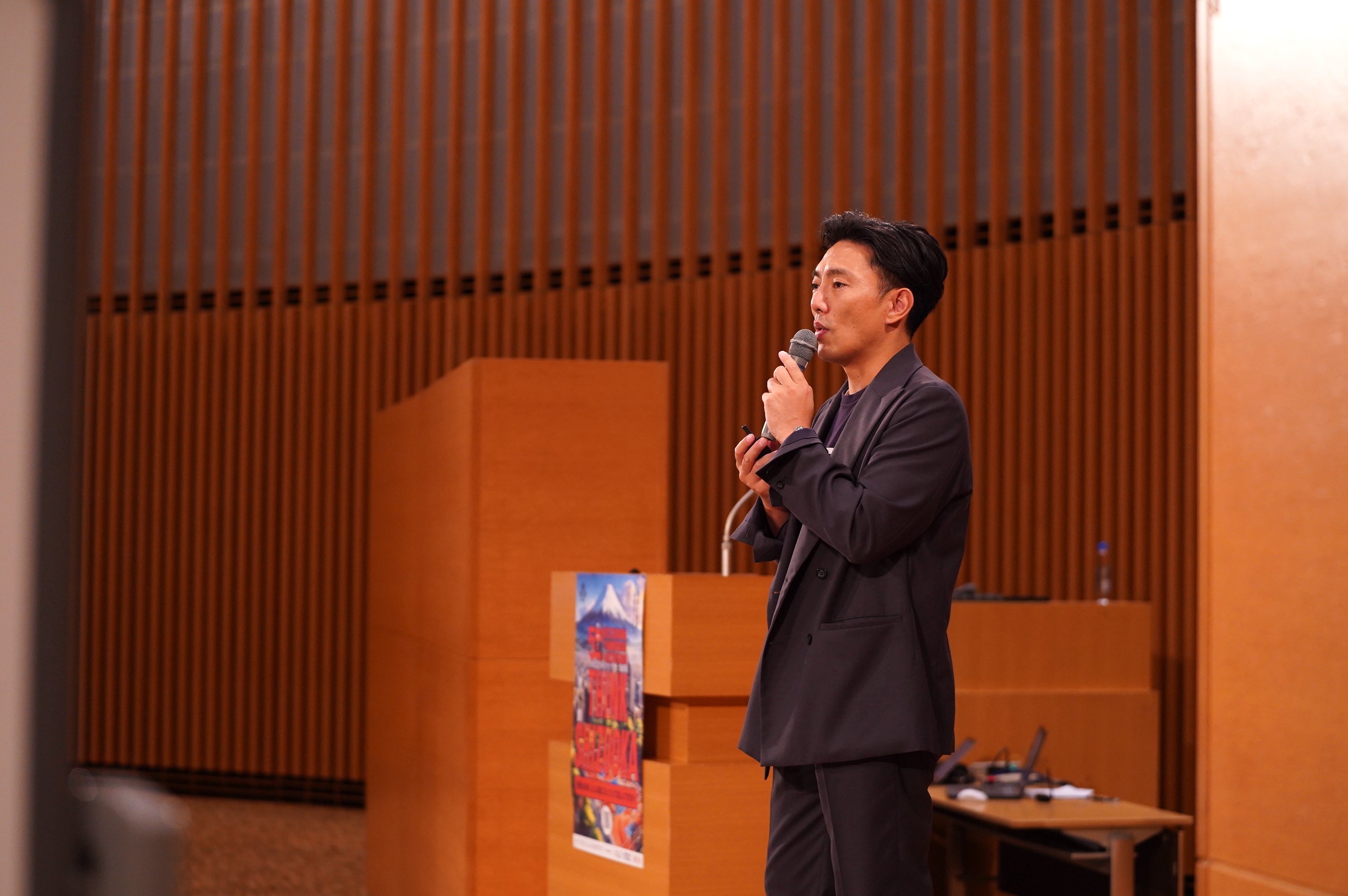 冒頭、主催者代表として(株)VELTEXスポーツエンタープライズ 代表取締役社長の松永康太より、THINK SHIZUOKAを立ち上げた経緯や、本ワークショップについての説明を行いました。
