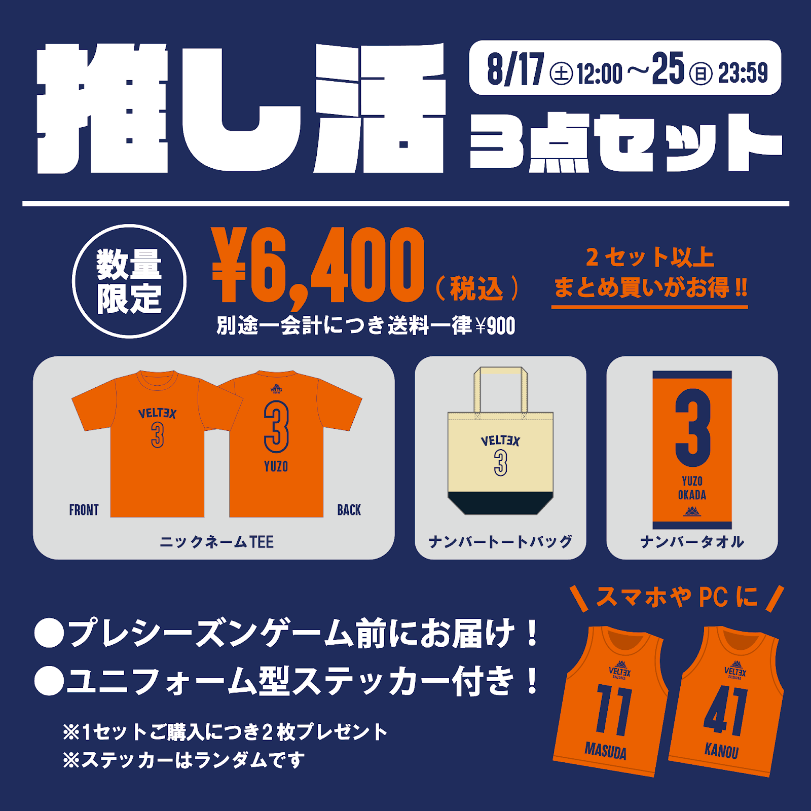 ※ ステッカーは別途ホームゲーム会場やイベント等でグッズ購入特典として配布する可能性がございます。オンラインショップ限定ではございませんので予めご了承ください。