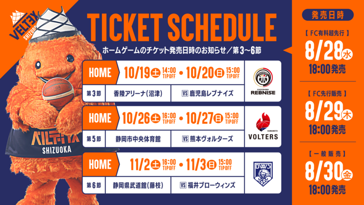 第3節~第6節ホームゲームチケット販売は8月28日(水)から開始!