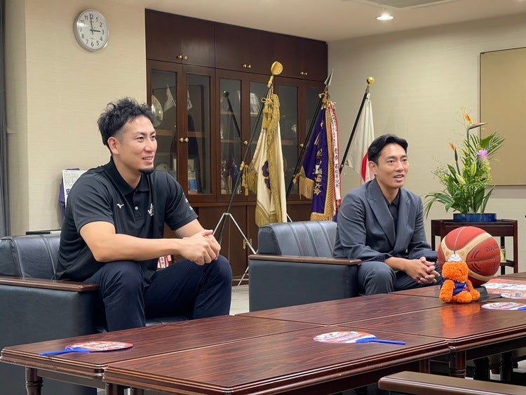 このたび、ベルテックス静岡では8月27日(火)2024‐25シーズン開幕を迎えるにあたり、北村正平 藤枝市長を表敬訪問いたしました。当日は、ベルテックス静岡より松永康太 代表取締役社長、加納誠也 選手が出席いたしました。