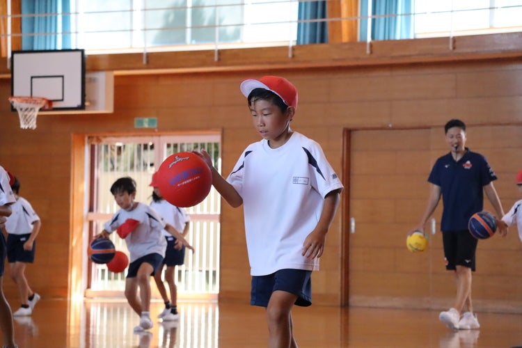第1回目は、御前崎市立御前崎小学校の5、6年生、計69名を対象に、ベルテックス静岡U18 田中健介 ヘッドコーチが専門種目であるバスケットボールについて実技指導を実施。「失敗しても挑戦すること!」をテーマに、難しいメニューにもチャレンジしました!