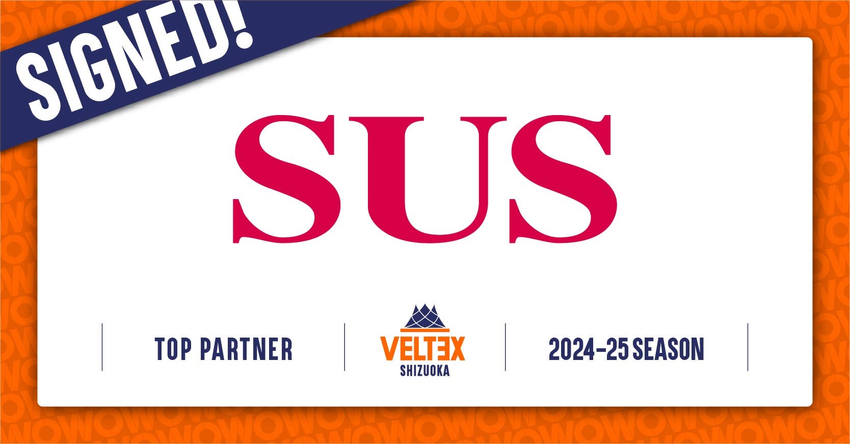 このたび、ベルテックス静岡は、SUS株式会社とトップパートナー契約を継続にて締結し、2024-25シーズンもご支援いただくことになりましたので、下記の通りお知らせいたします。
