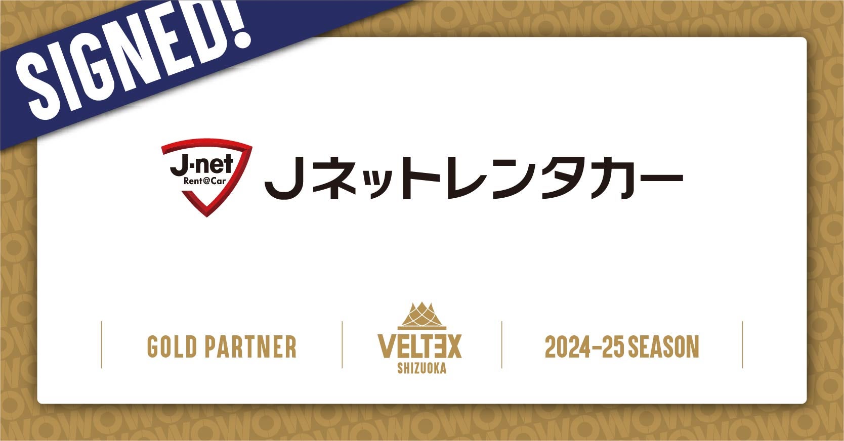 このたび、ベルテックス静岡は、J-netレンタリース株式会社とゴールドパートナー契約を継続にて締結し、2024-25シーズンもご支援いただくことになりましたので、下記の通りお知らせいたします。