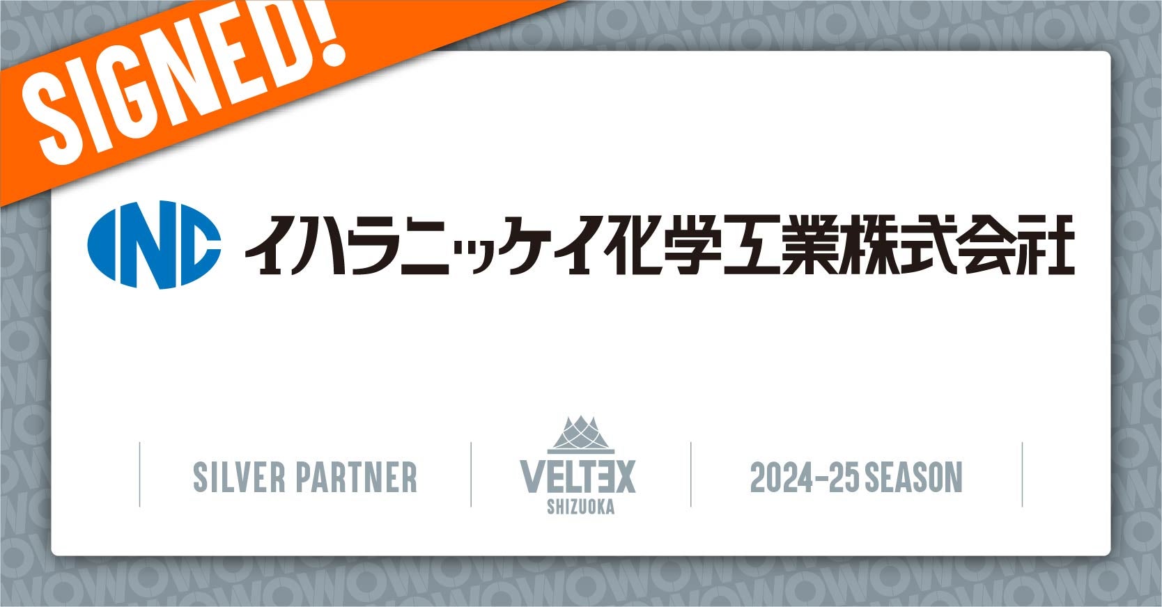 このたび、ベルテックス静岡は、イハラニッケイ化学工業株式会社とシルバーパートナー契約を継続にて締結し、2024-25シーズンもご支援いただくことになりましたので、下記の通りお知らせいたします。