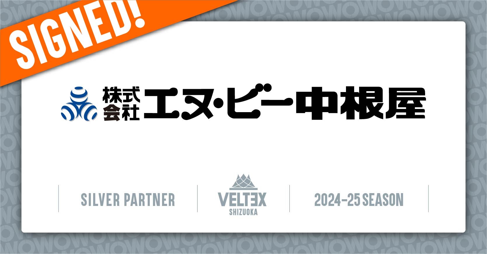 このたび、ベルテックス静岡は、株式会社エヌ・ビー中根屋とシルバーパートナー契約を新規にて締結し、2024-25シーズンからご支援いただくことになりましたので、下記の通りお知らせいたします。