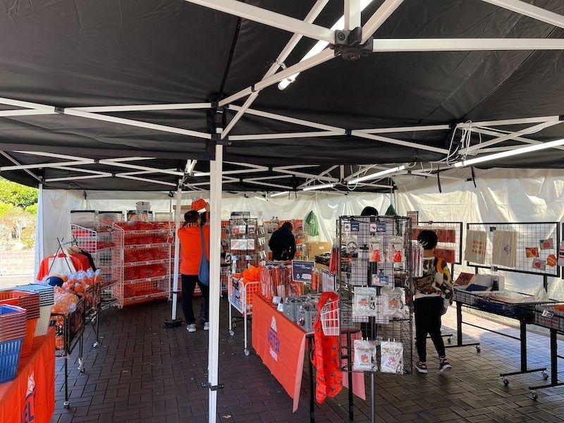 テント内の照明を増加いたしました。またテントの横幕を黒から白へと変更し、よりお買い物しやすい環境へと調整いたしました。