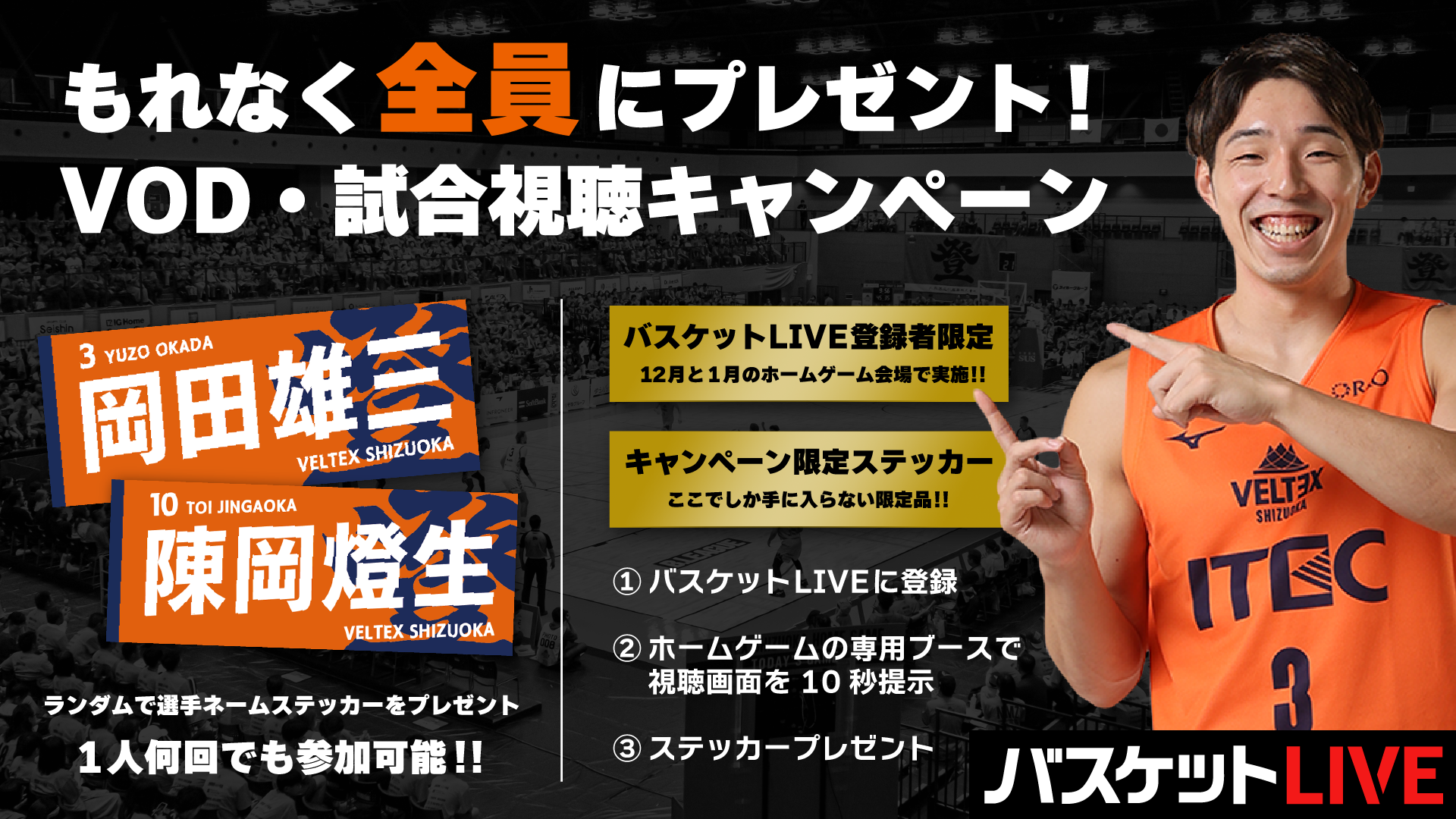 この度、バスケットLIVE登録者限定のプレゼントキャンペーン「もれなく全員にプレゼント!VOD・試合視聴でステッカープレゼント!」を実施することが決定!