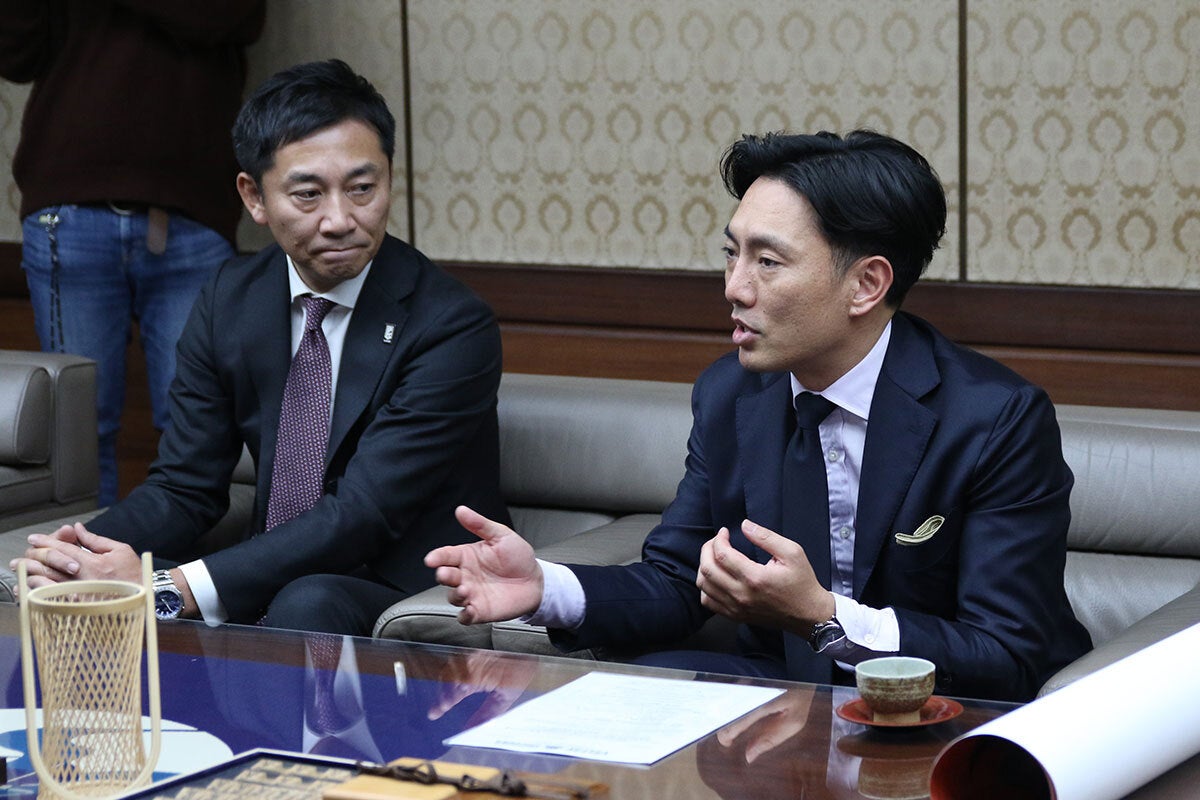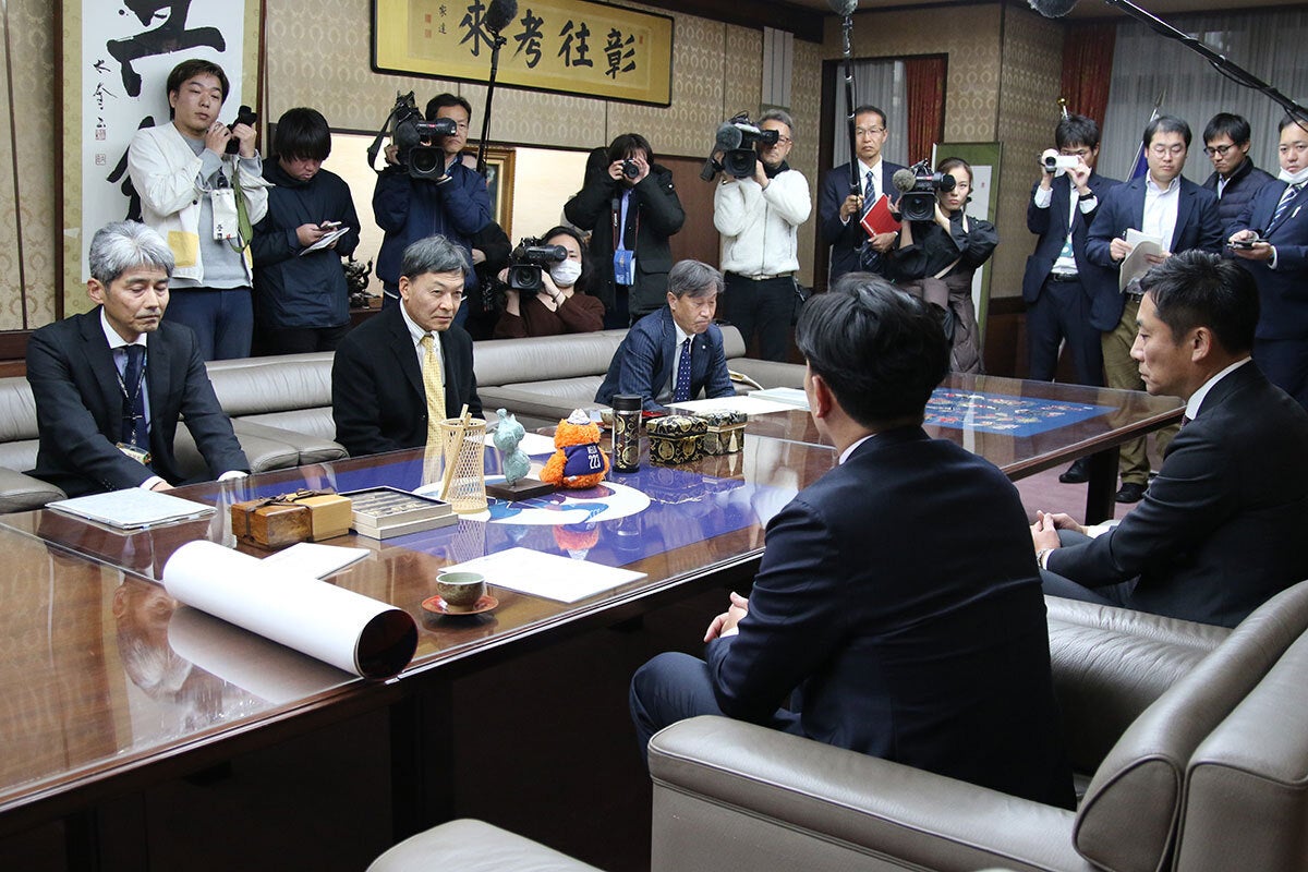 経営面でも競技面も成長著しいベルテックス静岡が、ライセンス基準をクリアし昇格していくためには、どうしても条件としてアリーナが必要になってきます。そのことはご理解いただけていると思いますので、あらためて直接お会いして、レギュレーションのご説明と、アリーナのお話をさせていただきました。そして何よりも、これまでもベルテックス静岡を力強く支えてきてくれた市長や、職員の皆様にもお礼をしたいと思い、今回こちらに足を運ばせていただきました。