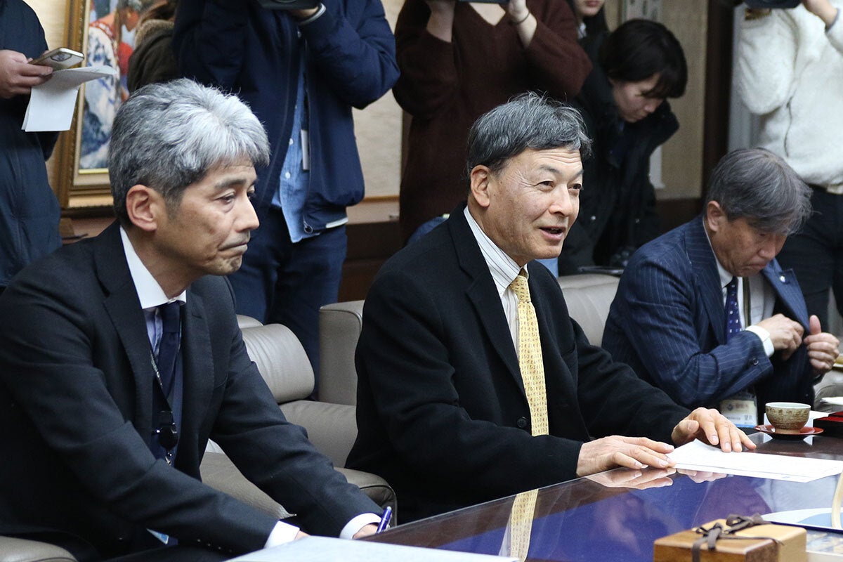 先日の12月1日に現行B1ライセンス申請の発表をいたしました。静岡市とも方向性をすり合わせてきた中で、このタイミングで改めて島田チェアマンにも進捗の確認の意味も込めて本日の訪問につながりました。様々なところでスタンスを表明しておりますが、今回の現行B1ライセンスの申請はきっかけには過ぎません。静岡にあるべき夢のアリーナプロジェクトを推進していくことの、きっかけのひとつになってもらえればという思いであります。