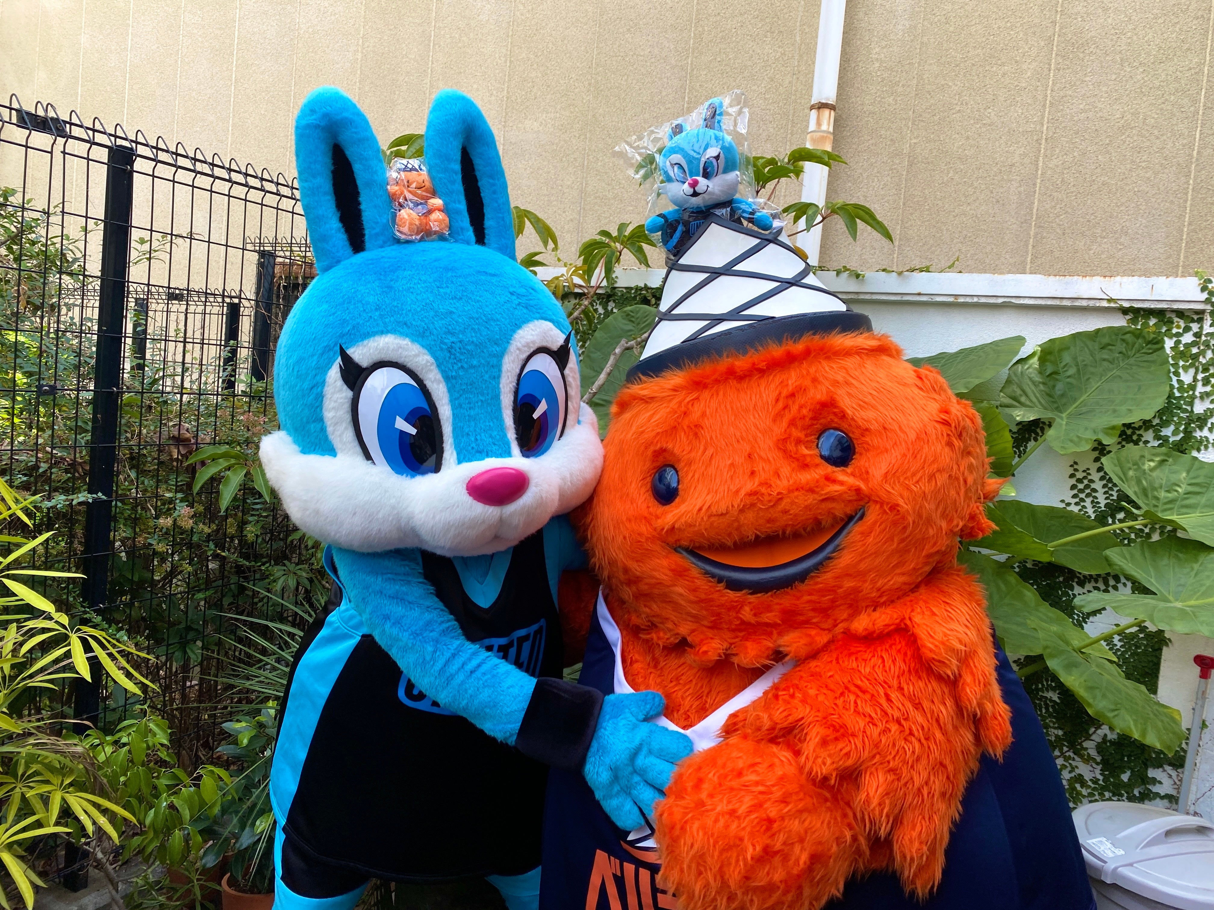 19日には、門前仲町(江東区)をホームタウンとして活動する東京ユナイテッドバスケットボールクラブのマスコットキャラクター「ユナイト」が駆けつけ、ベルティと1年半ぶりの再会。その姿を見届けようと多くのお客様がご来場くださりました。