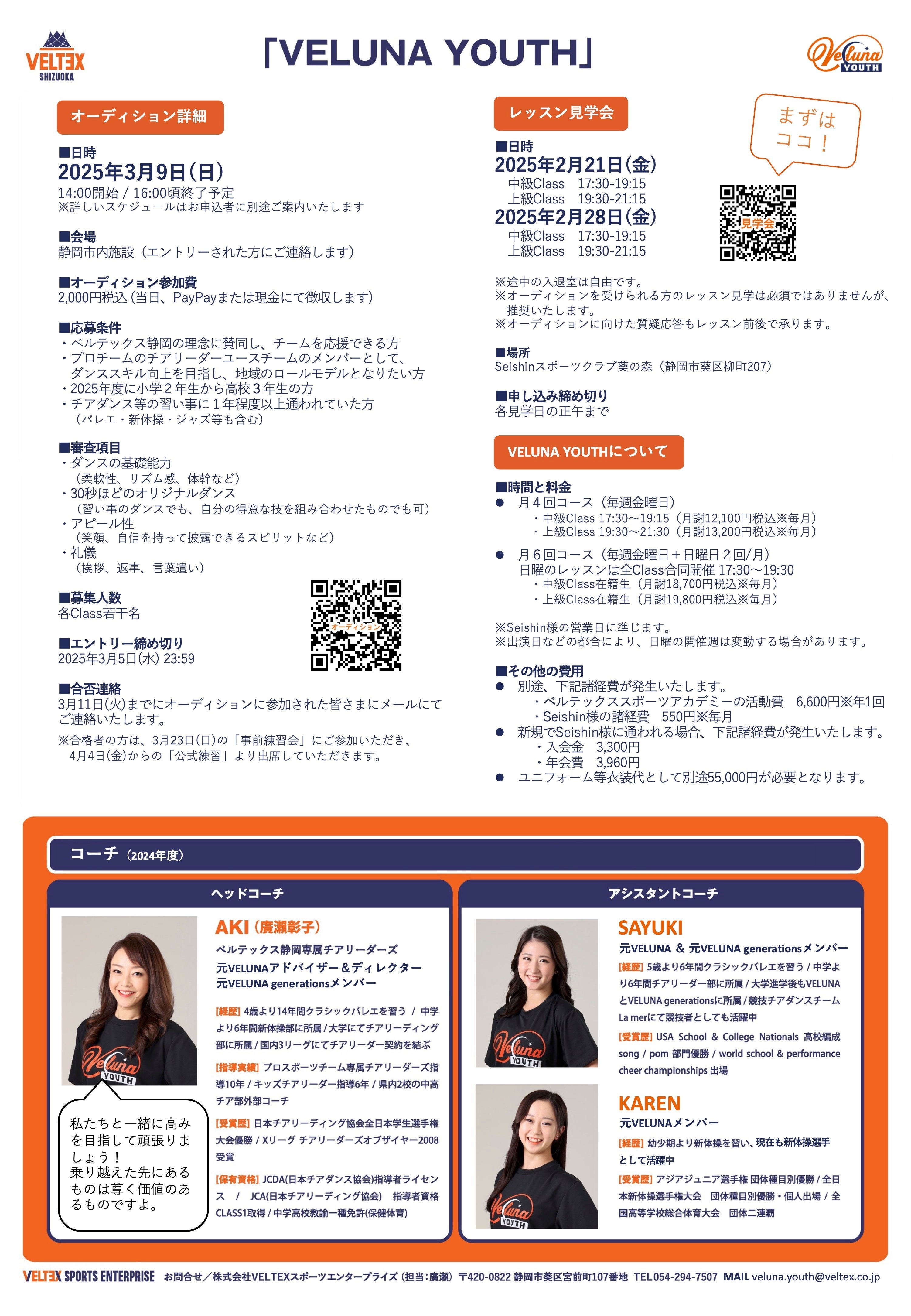 「VELUNA YOUTH」 2025年度追加オーディションのお知らせ