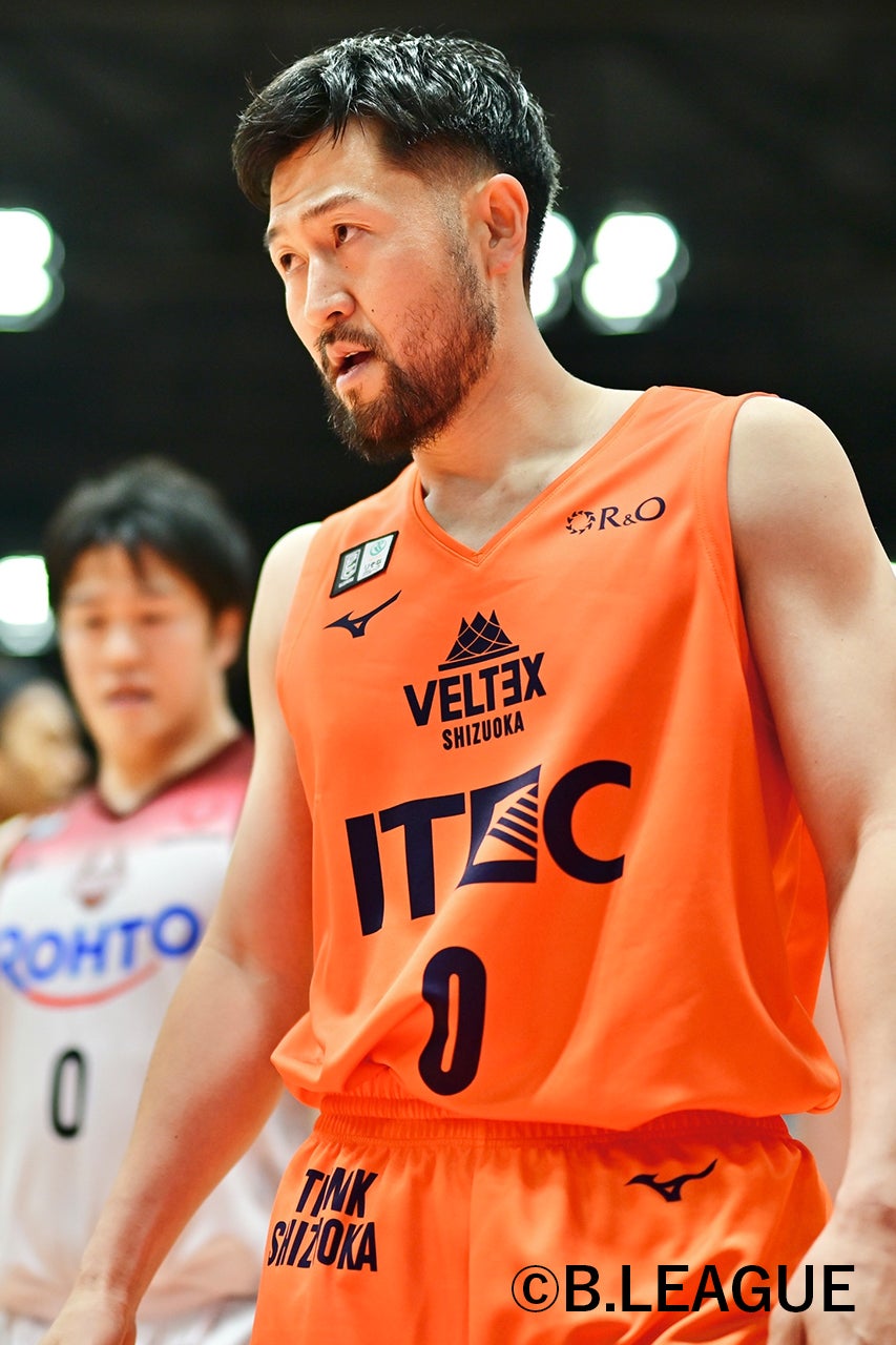 いきなりチーム最年長で加入した36歳。過去、三河、琉球、北海道、A東京、越谷とB1でプレーしてきた。「色々なチームにいたけど、静岡は魚や食べ物がすごくおいしい」。新天地を気に入りつつあるものの、唯一の「不満」を訴える。単身赴任中で、なかなか家族と会えないことだ。