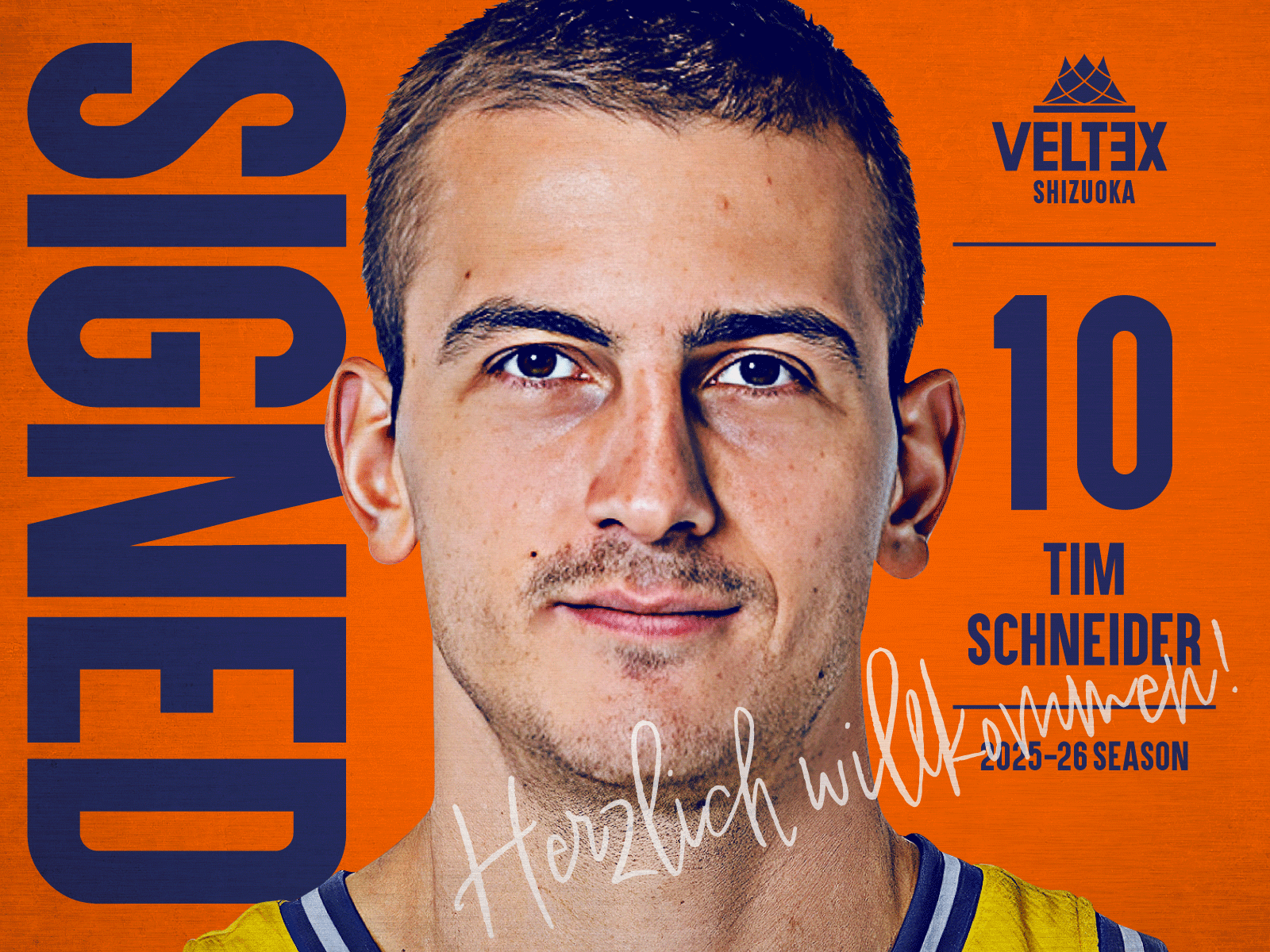 この度、#10 ティム・シュナイダー選手と2025-26シーズンの選手契約に合意(新規)しましたのでお知らせいたします。