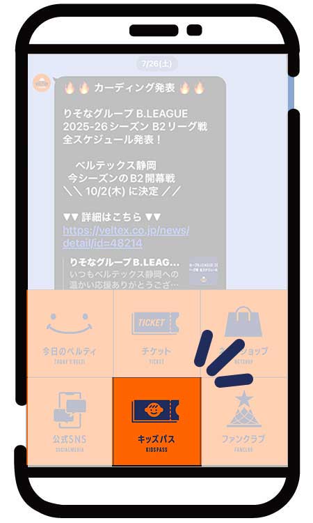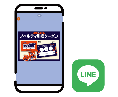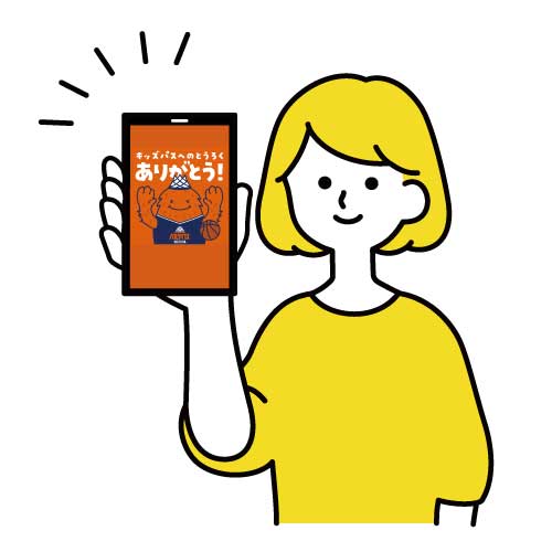 ②観戦される試合当日、ファンクラブブースにて「キッズパスの来場ポイントです」とお伝えいただき、観戦チケットと配信されたLINEクーポン画面(初回のみ)をご提示ください