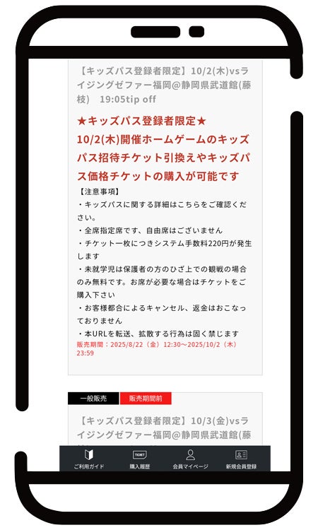 各節の一般販売日時から引換え・購入が可能です。FC超先行・FC先行のタイミングでキッズパスは引換え・購入できませんのでご注意ください。