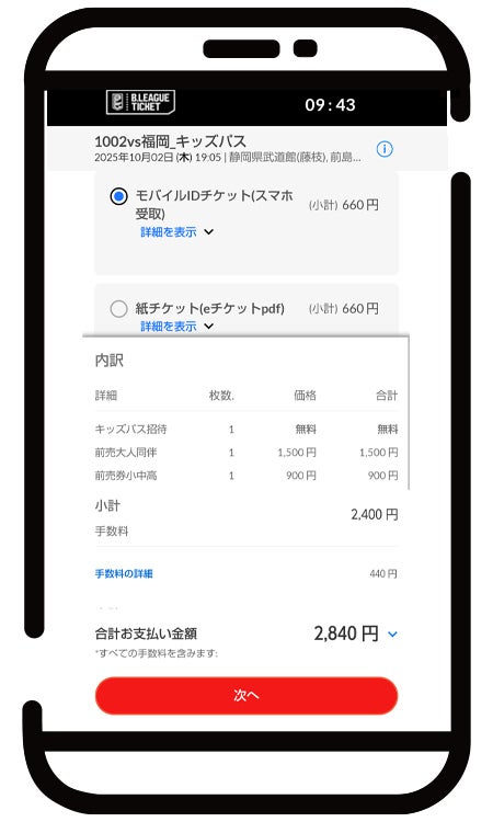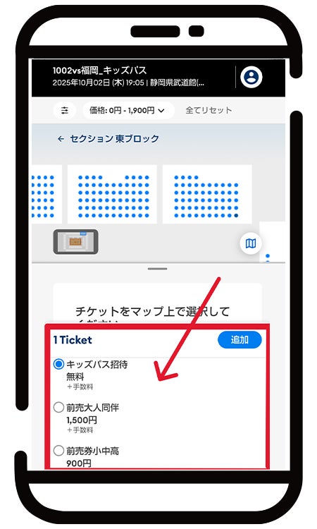 ②キッズパス引換購入ページから、観戦希望の試合を選択!