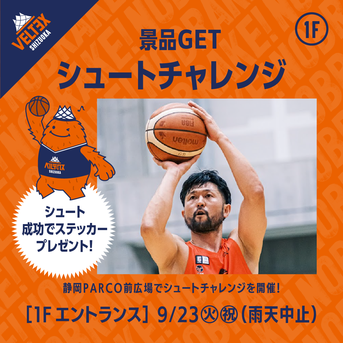 選手も来館予定の9月23日(火・祝)には静岡PARCO前にてシュートチャレンジも実施します。シュート成功でステッカーをプレゼント!ふるってご参加ください!