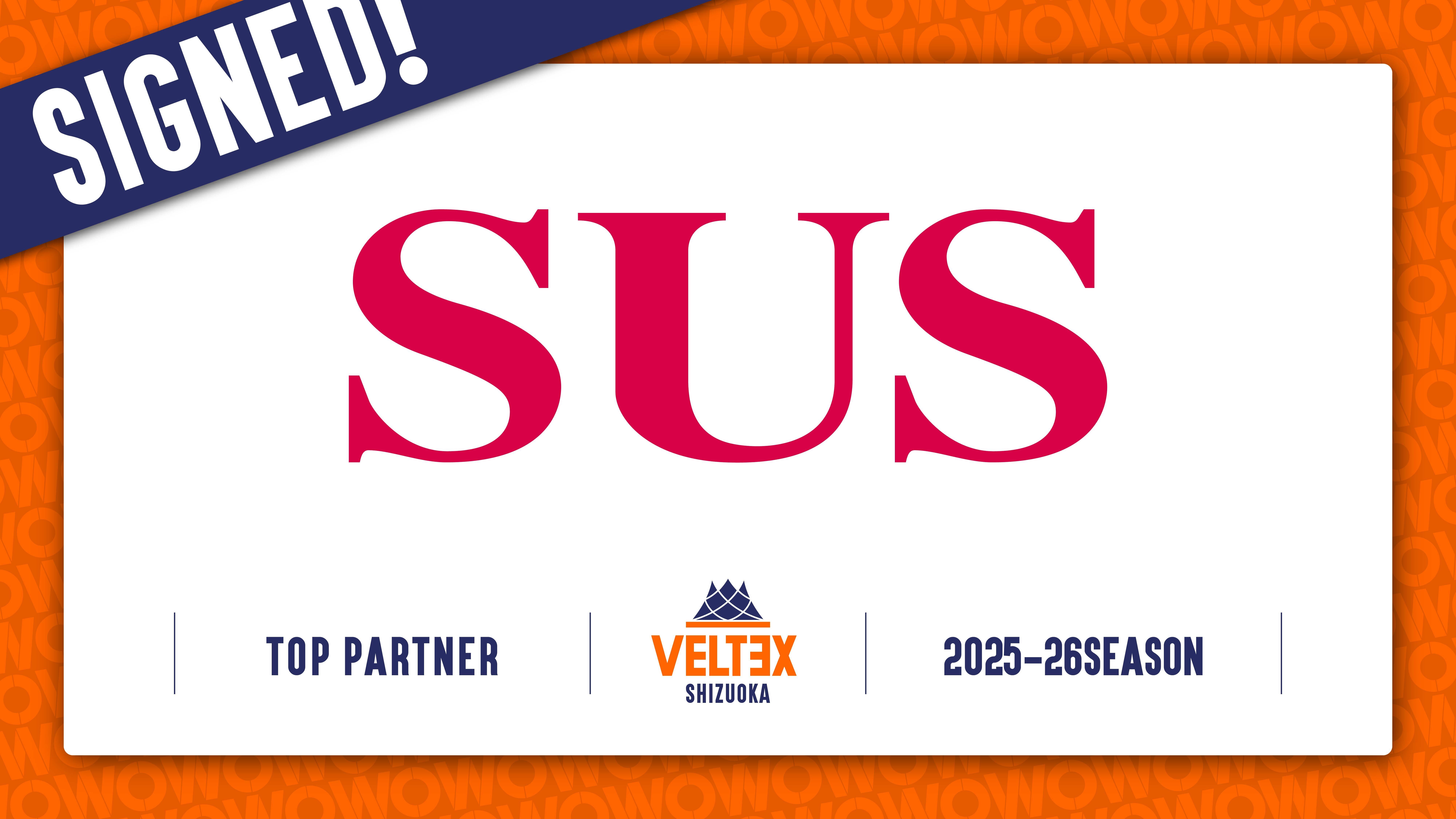 このたび、ベルテックス静岡は、SUS株式会社とトップパートナー契約を継続にて締結し、2025-26シーズンもご支援いただくことになりましたので、下記の通りお知らせいたします。