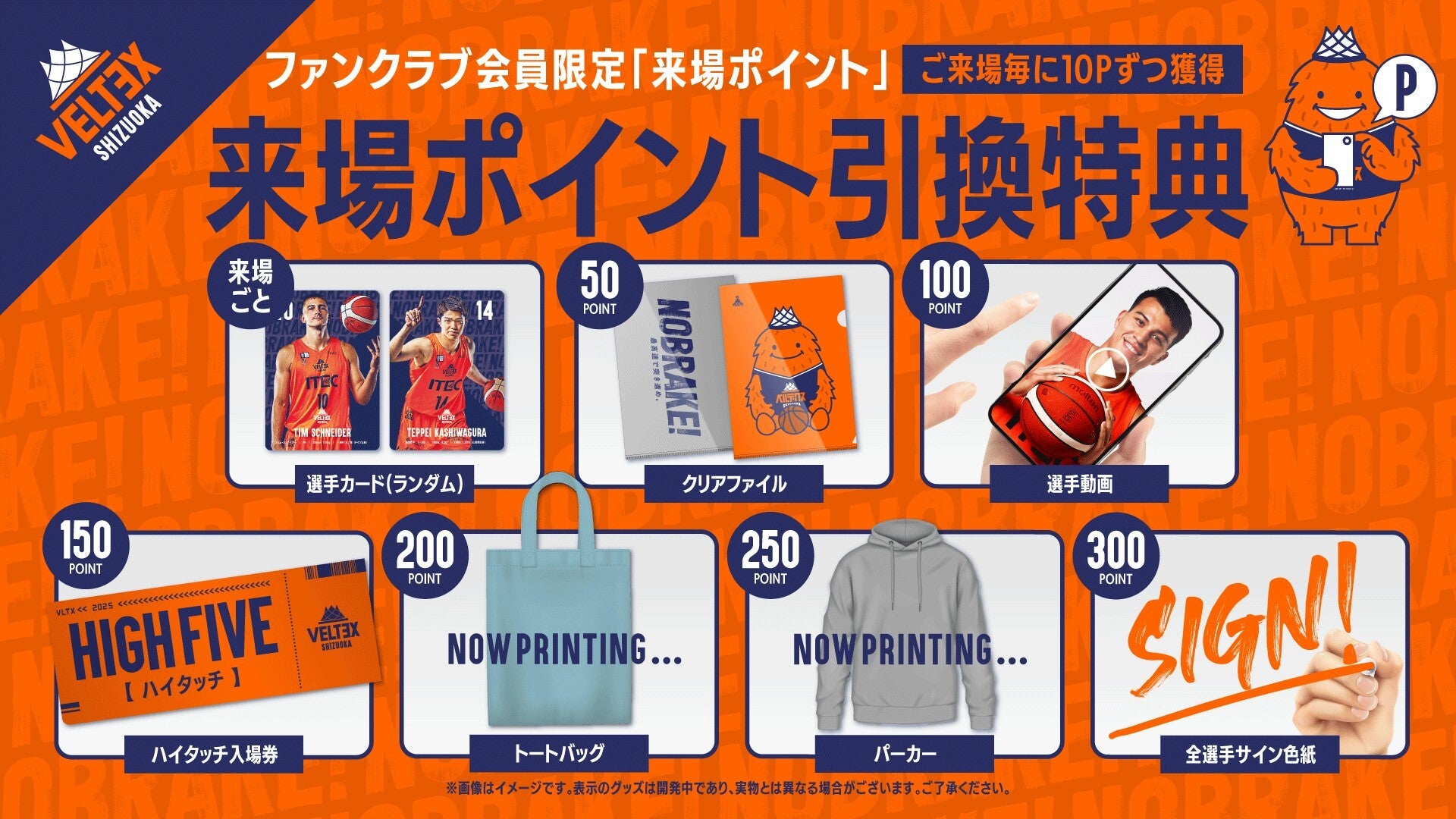 ファンクラブVELSTARでは、ホームゲームご来場時の来場ポイントの特典が決定しました。