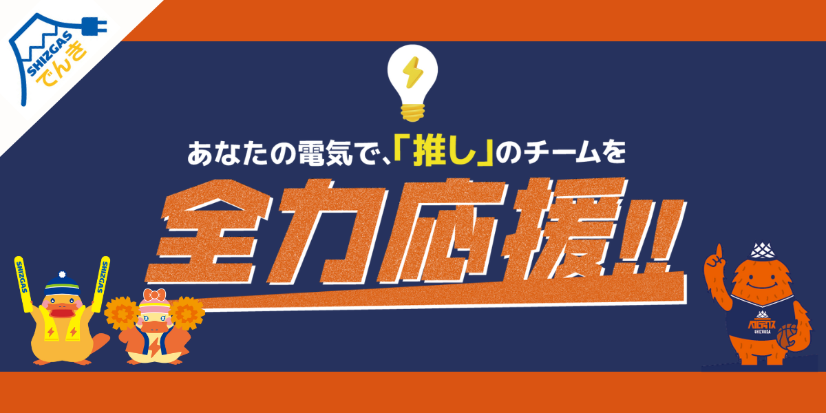 この度、プラチナパートナー静岡ガス株式会社(代表取締役 社長執行役員 松本尚武 様)のグループ会社で、電力事業を展開する静岡ガス&パワー株式会社(代表取締役 取締役社長 藤田猛 様)から、ご家庭をはじめとする低圧の電気をお使いのお客さま向けの「SHIZGAS でんき※1」の新たなサービスとして「ベルテックス静岡応援パック」(以下、本サービス)の申込受付が10月30日(木)から開始されることとなりました。