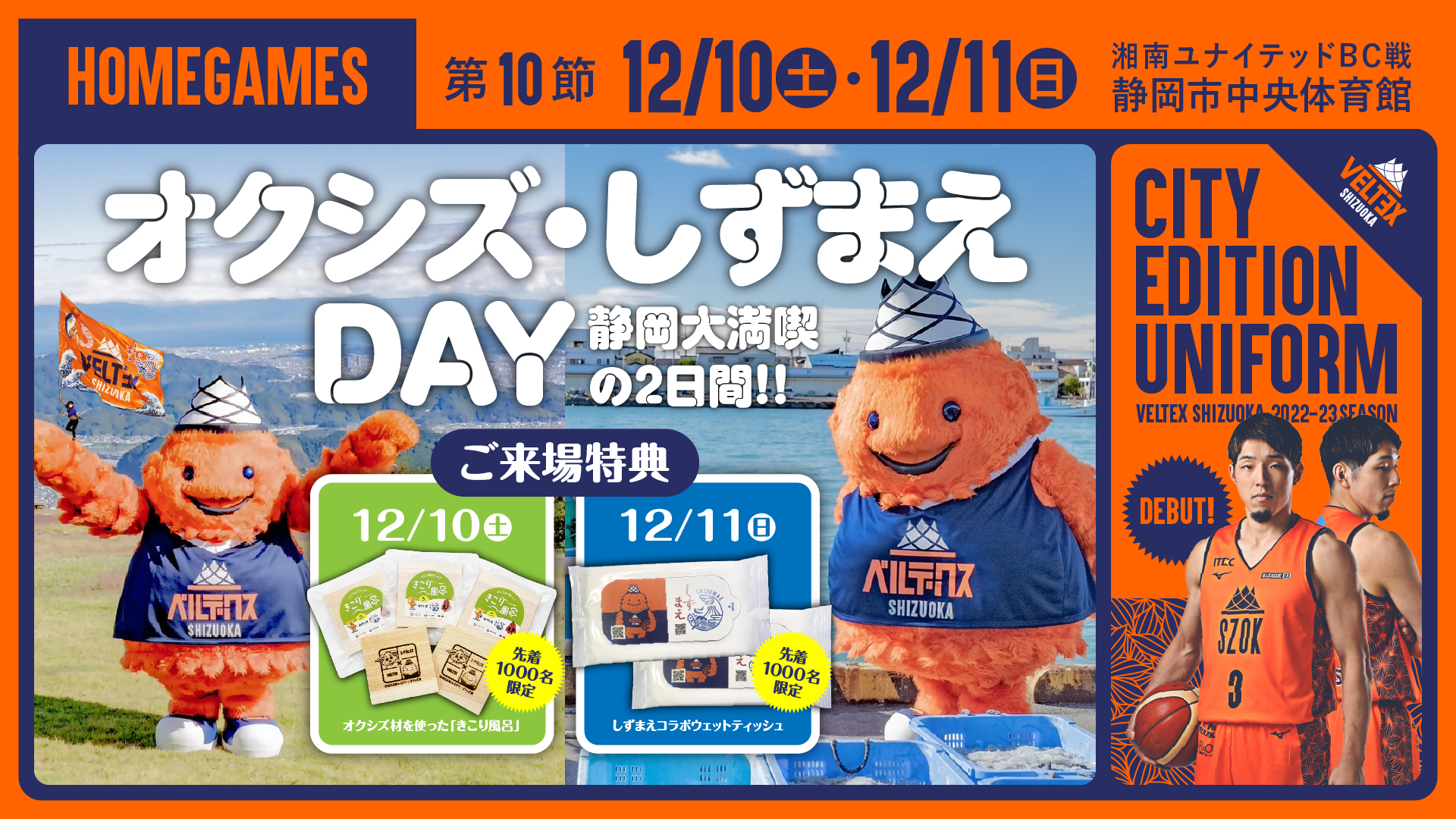ベルテックス静岡初のCITY EDITION UNIFORMを着用する第10節・湘南ユナイテッドBC戦は「オクシズ・しずまえDAY」として、静岡市が推進する2大ブランドとコラボする2日間!