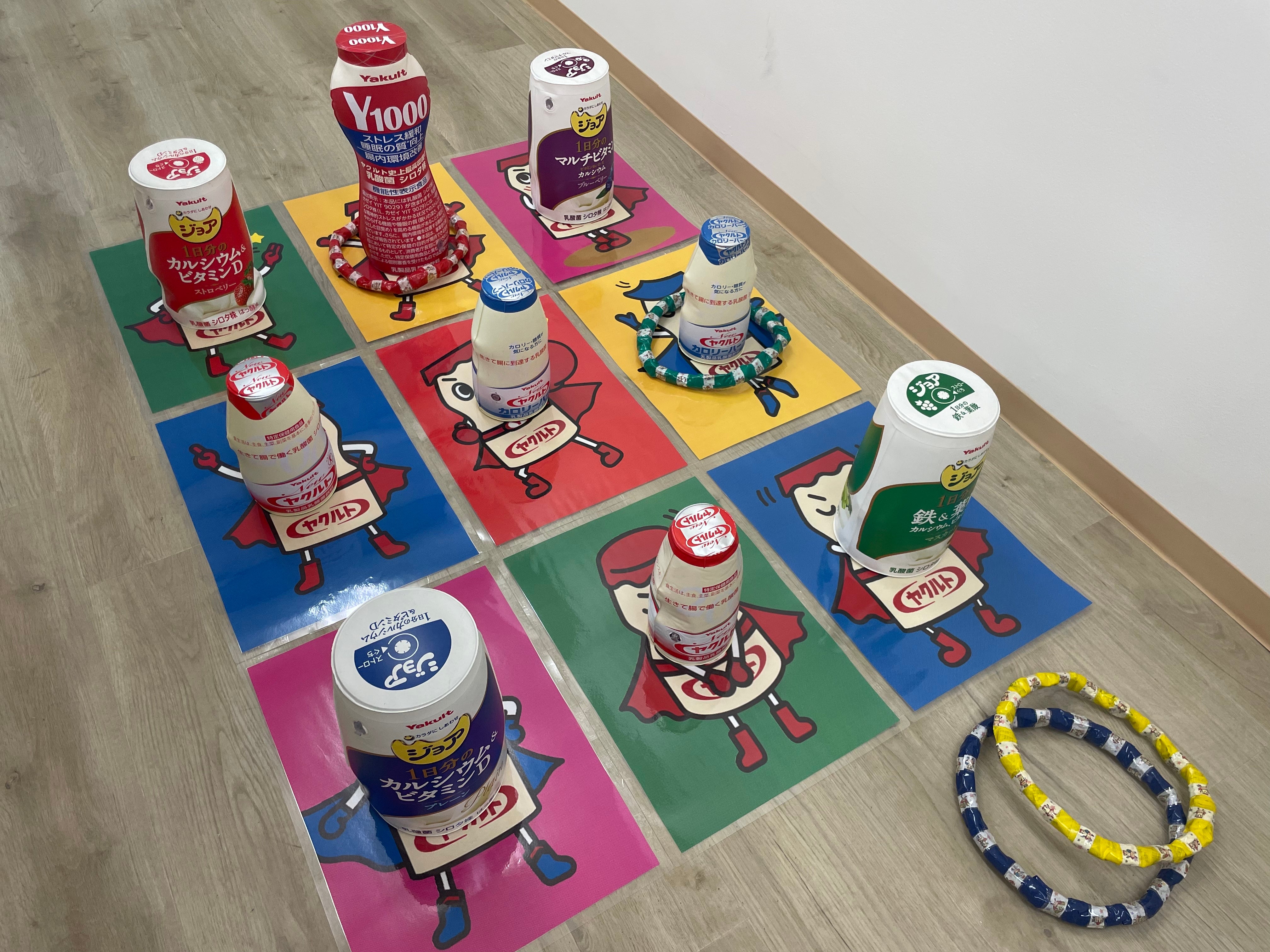 中央静岡ヤクルト販売より、バルーンを使った輪投げを実施。