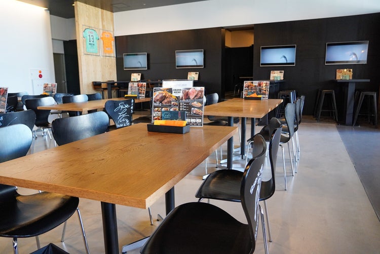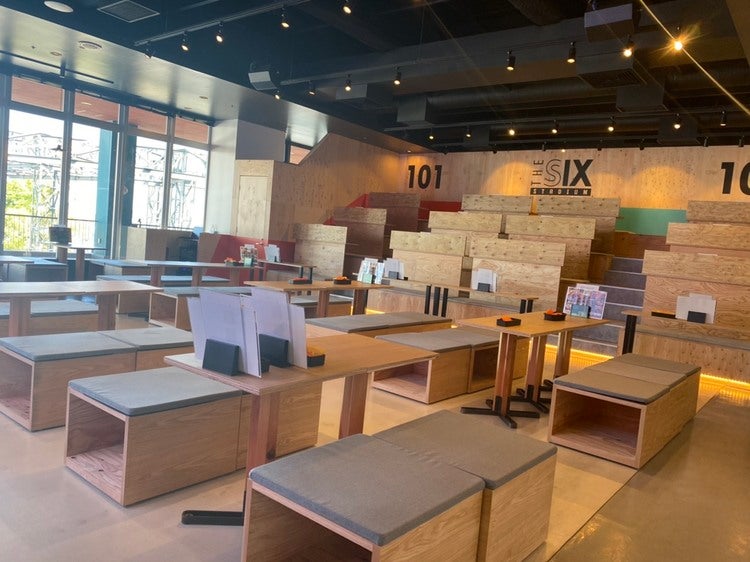 広々とした店内で密にならずに、食事やスポーツ観戦が楽しめるTHE SIX STADIUM。