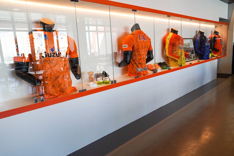 エスパルスドリームプラザ内にあるというだけあり、中には所狭しとここだけでしか見られない清水エスパルスのユニフォームや選手のサイン入りアイテムが展示されています。