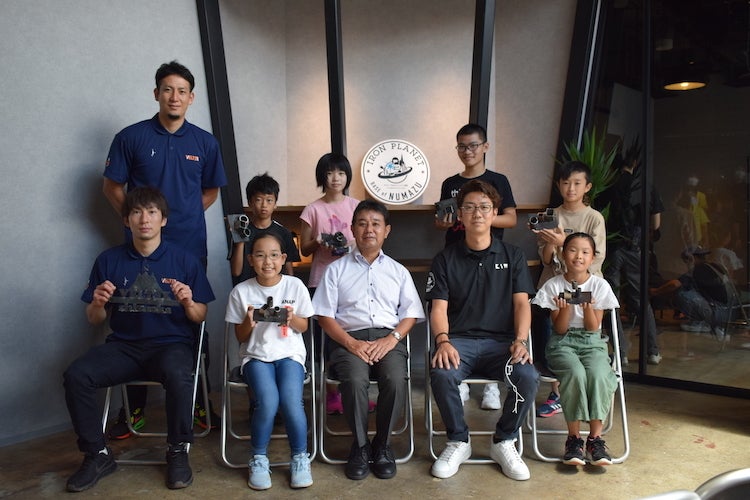 すべてのイベントが終了し、最後にはペン立てを作った参加者の皆さんと記念撮影にも参加させていただきました。 そして、大石選手が手に持っているもの・・・お分かりいただけますでしょうか?