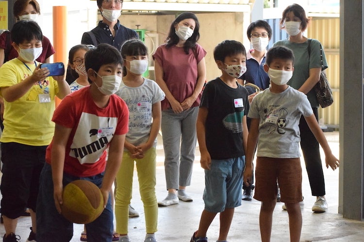 熱い中ではありましたが、シュートが入るまでチャレンジを続ける子どもたちに感心してしまう選手たち。