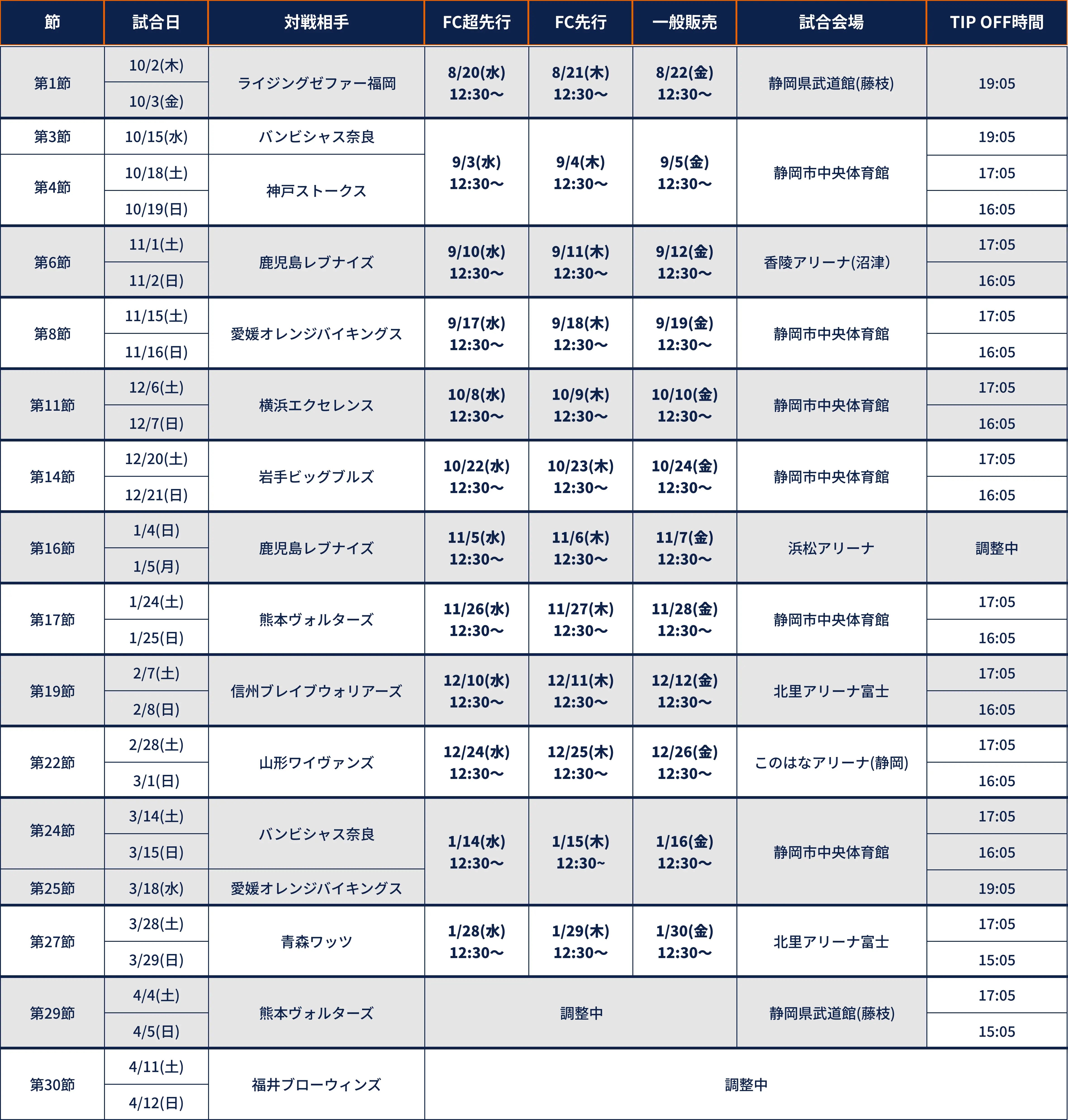 HOMEGAMES TICKET SALES SCHEDULE 販売スケジュール