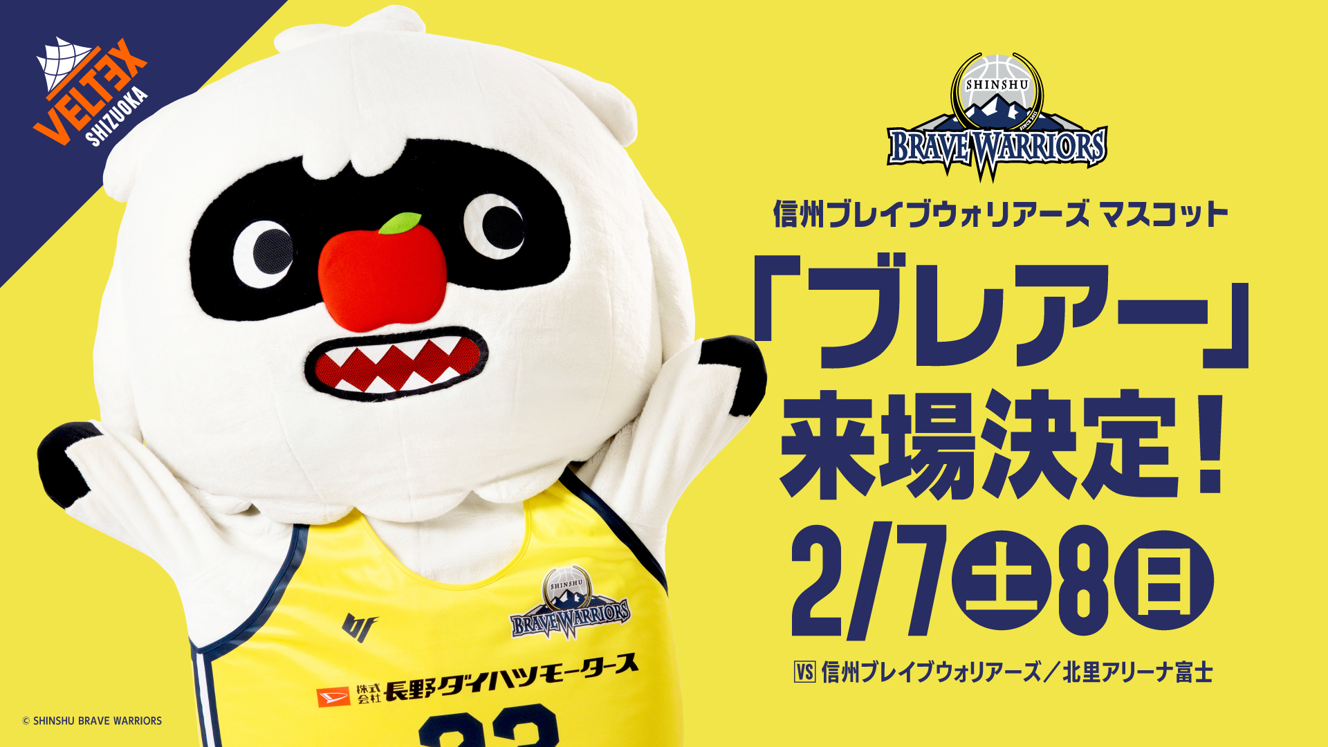 2月7日(土)・8日(日)開催のりそなグループB.LEAGUE 2025-26シーズン B2リーグ戦 第19節 信州ブレイブウォリアーズ戦にて、信州ブレイブウォリアーズ 公式マスコットキャラクター「ブレアー」が来場することが決定しました!